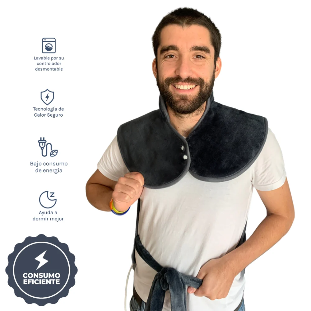 La almohadilla térmica cervical Ozu es la mejor opción para relajar tu espalda y cuerpo, ya que no solo la puedes usar en la parte de atrás, sino en tu abdomen o piernas y amarrarla con sus correas de sujeción y broches en la parte superior. Una experiencia diferente que hará que la puedas usar sin limitaciones de movilidad, ya que su cable de 2 metros hace que puedas moverte sin preocupaciones.